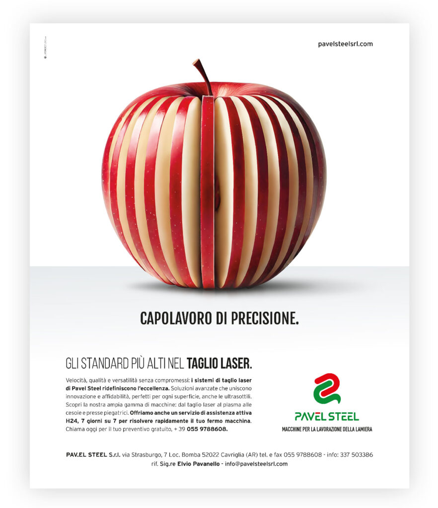 Nasce nel 2012 la collaborazione con Pav.el Steel Azienda specializzata nel taglio della lamiera Laser e Plasma per la realizzazione di pagine pubblicitaria su riviste settoriali come LAMIERA e MACCHINE UTENSILI. In un mercato B2B, la comunicazione è strategica, e distinguersi è di primaria importanza, le pagine pubblicitarie efficaci rafforzano il brand, valorizzano i prodotti e creano nuove opportunità. Con un’identità solida e visibile, Pavel Steel continua a crescere, consolidando la sua leadership e costruendo relazioni di valore con partner e clienti.