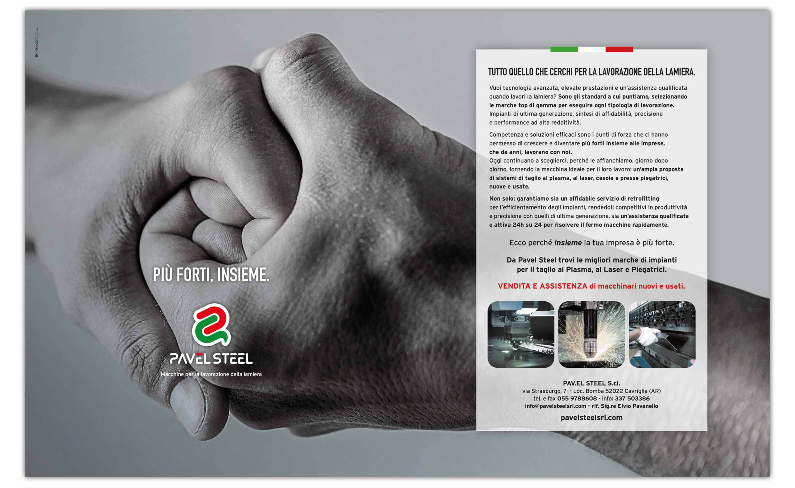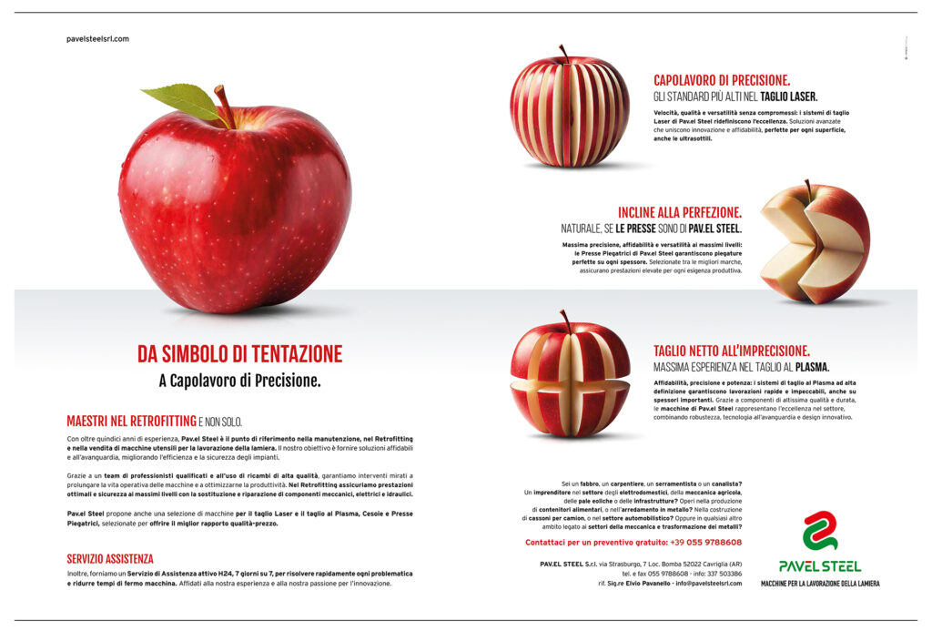 Le pagine pubblicitarie realizzate in questi anni per Pavel Steel non sono semplici annunci: sono strumenti di identità, costruiti su misura per valorizzare tecnologia, innovazione e affidabilità.