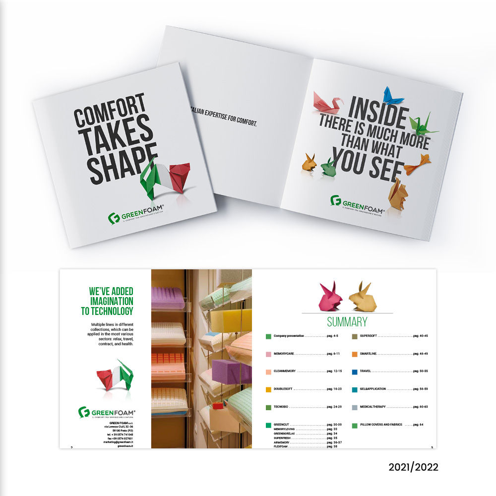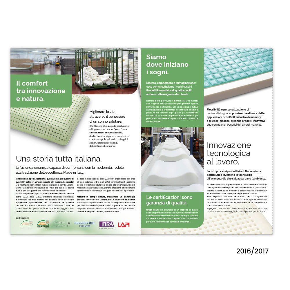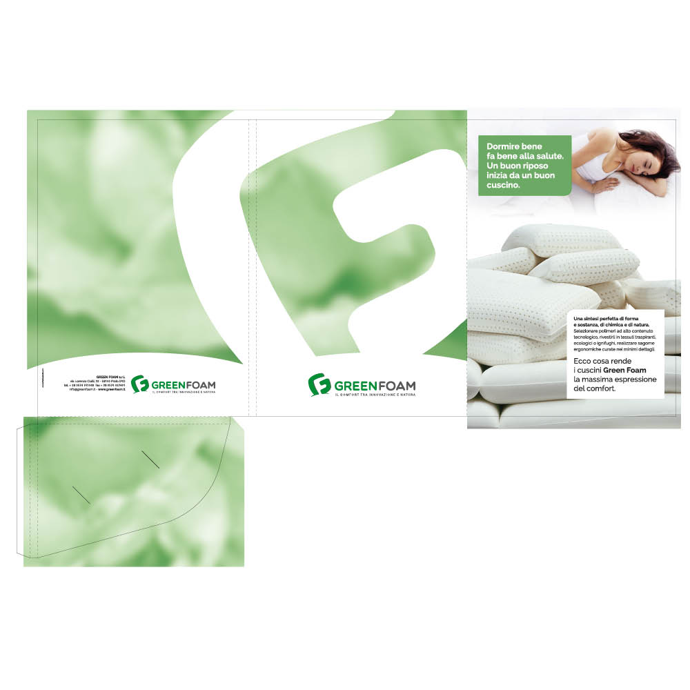 Nasce una brochure dal design funzionale che si trasforma in una vera e propria cartellina-contenitore, pensata per custodire e raccontare la storia di Green Foam in modo ordinato e d’impatto.