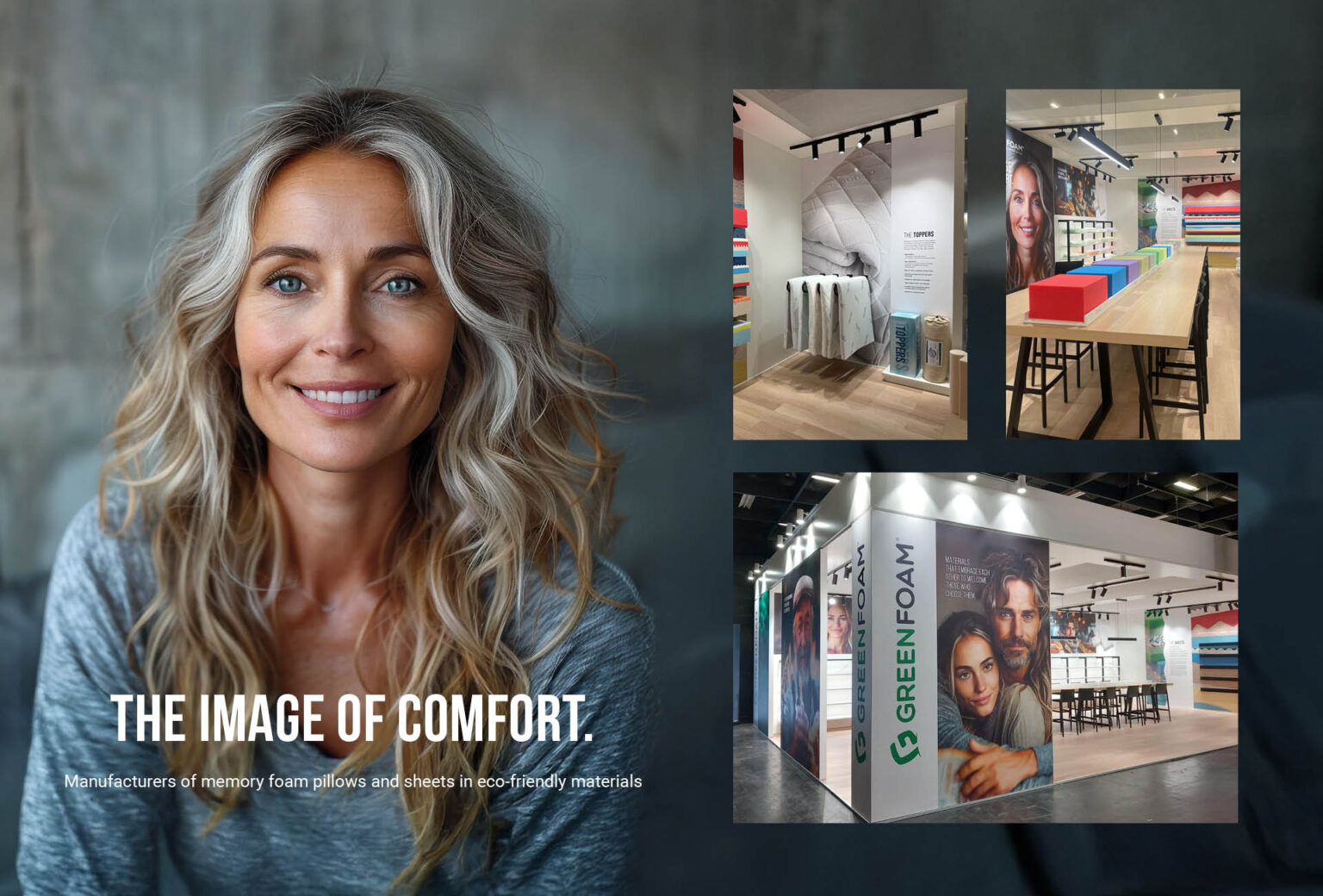 The Image of confort è l’ultimo concept sviluppato nel 2025. Tale leitmotiv viene espanso in tutta le comunicazione quali: stand, catalogo, gadget, news, social. Nell’immagine lo stand della fiera INTERZUM di Colonia 2025.
